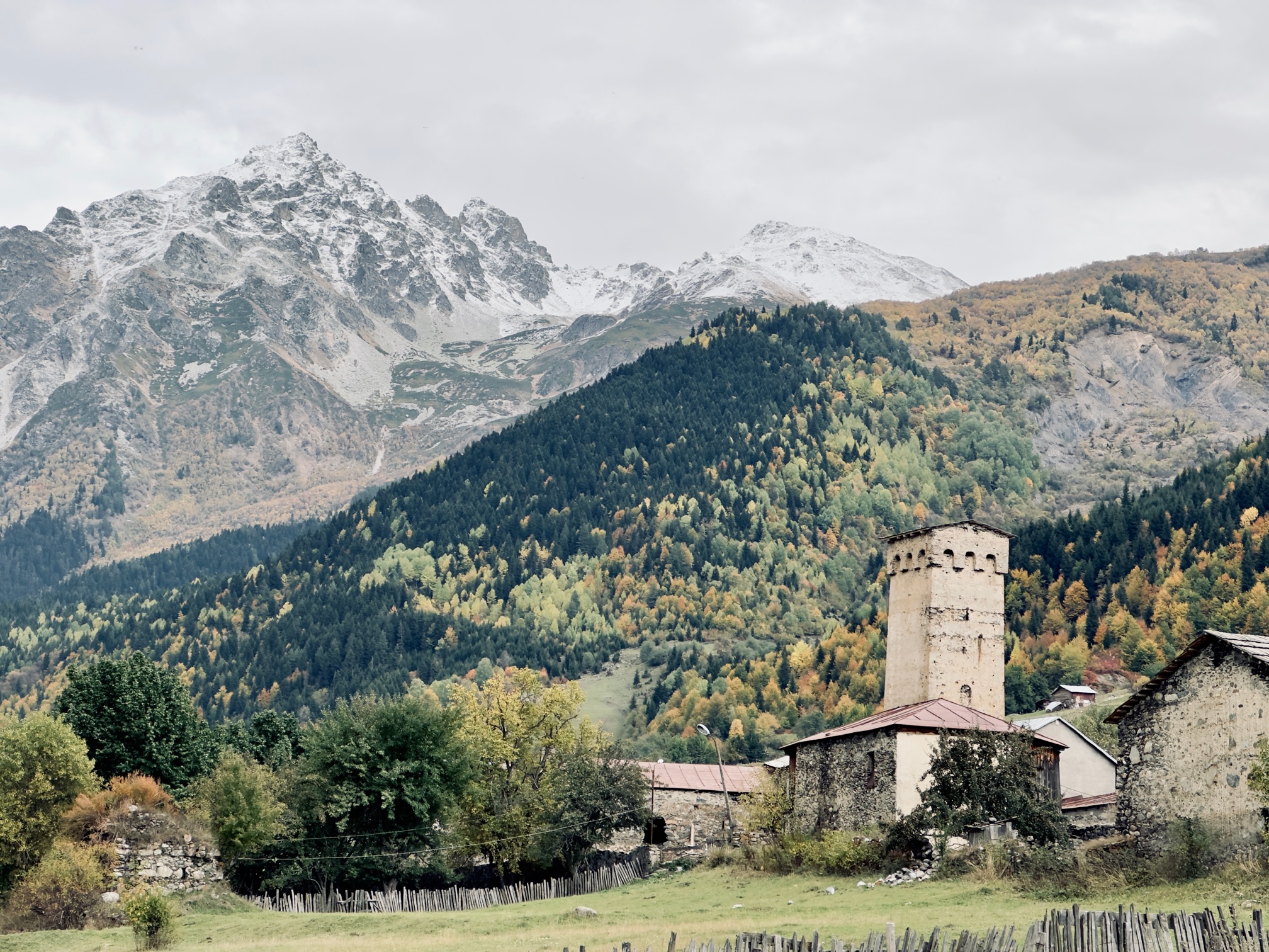 Zhabeshi ist winzig, aber schön, liegt es doch am Fuße des Tetnuldi, einem weiteren beeindruckenden Berg des Kaukasus.