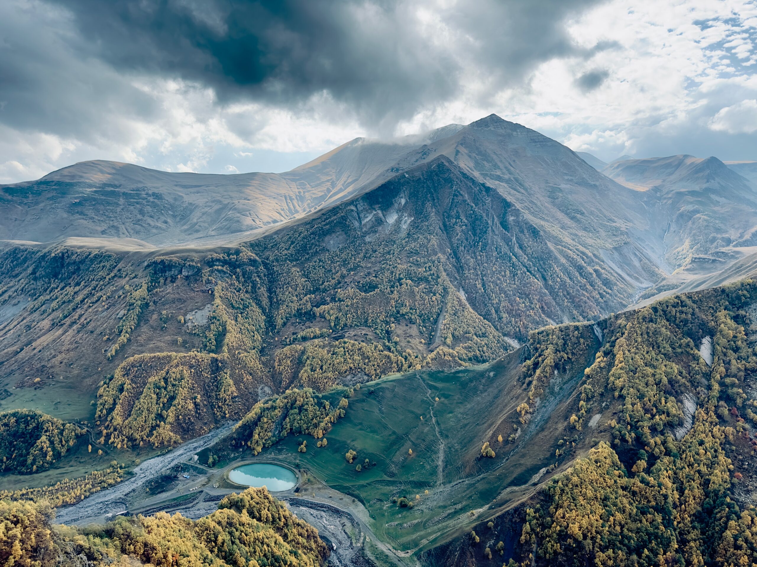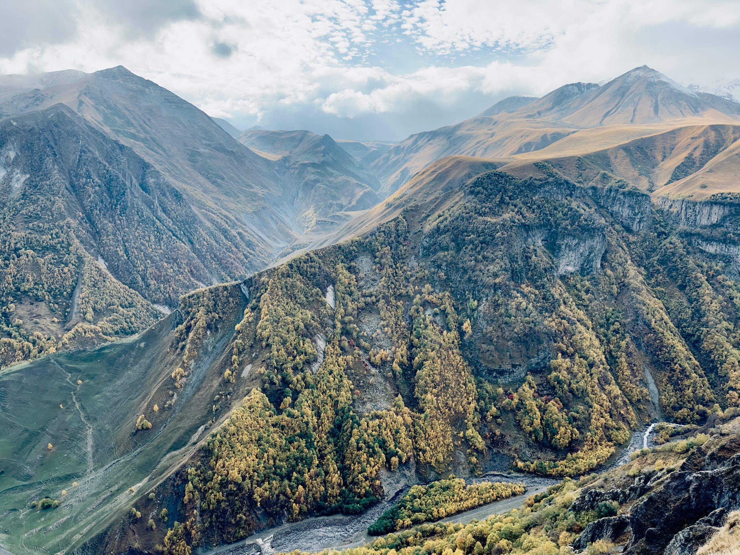 Einige Momente weiter fahren wir durch Gudauri. DER Skiort in Georgien. Hier geht wohl von Dezember bis April was, den Rest der Zeit ist es tot. Keines der Hotels, und davon gibt es eine Menge, hat geöffnet und die Shops und Supermärkte haben ebenfalls geschlossen. Merkwürdiger Ort. Einerseits super touristisch und dann donnern aber alle paar Sekunden LKW durch die einzige größere Straße, weil dies die einzige Verbindung zu Russland ist und damit keine Möglichkeiten gegeben sind, den LKW Verkehr umzuleiten. Muss toll sein im Winter.