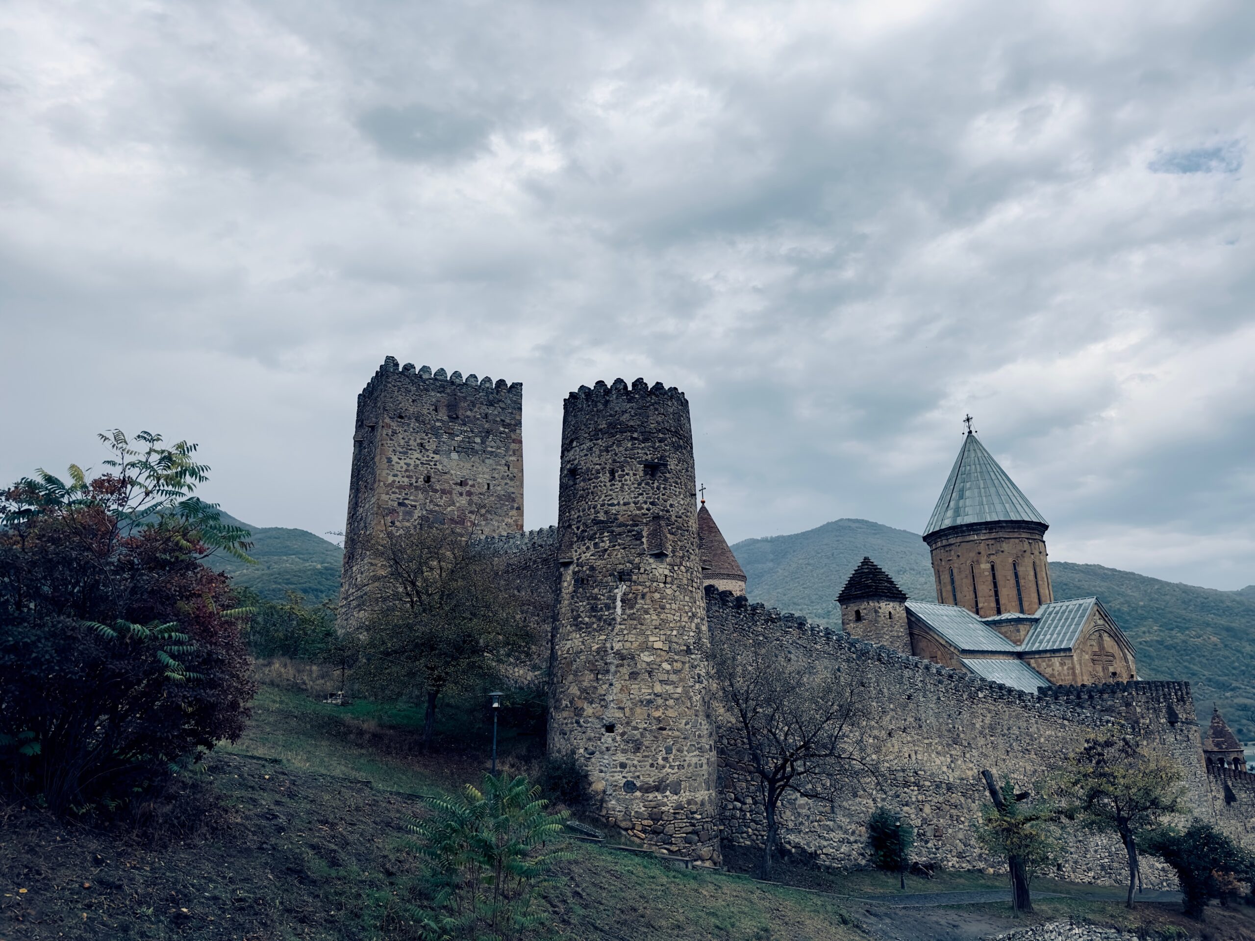 Als nächstes steht die Burg Ananuri auf dem Programm. Start der Bauarbeiten war wohl im 13. Jahrhundert und wurde dann bis ins 18. Jahrhundert erweitert. Dir Burg liegt strategisch günstig und hat somit einige Belagerungen und Schlachten gesehen und überstanden. Eine Kapelle in der Mitte der Burg erinnert and das hier allgegenwärtige orthodoxe Christentum. Groß ist die Burg nicht, aber diente schließlich auch nur als Rückzugsort bei Angriffen.