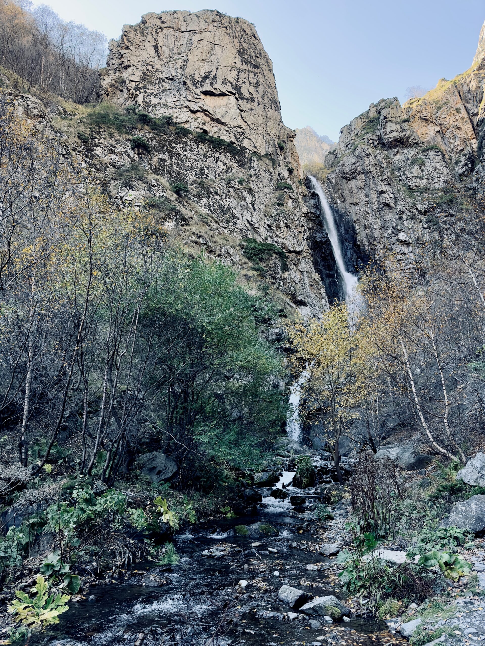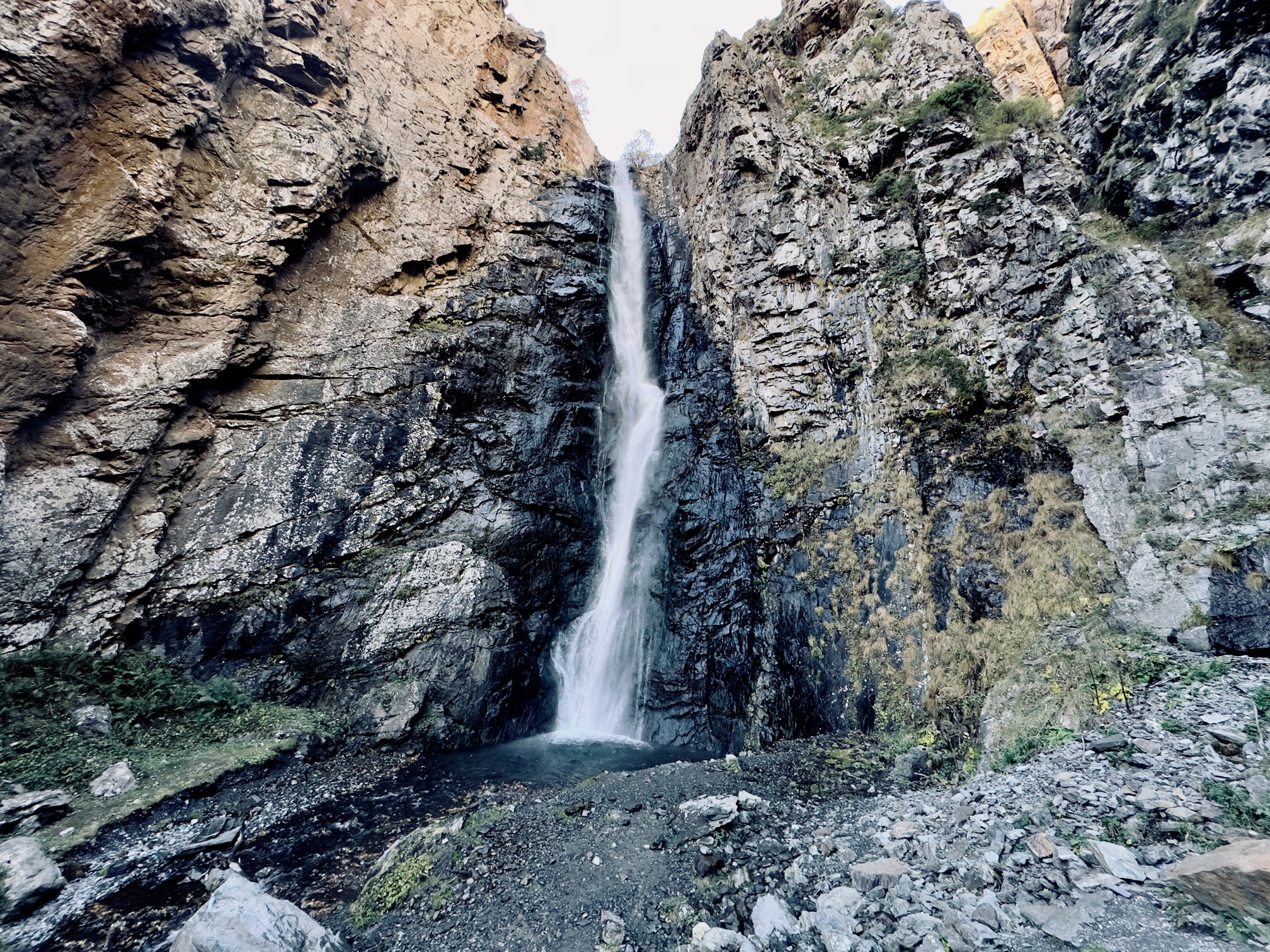 Im Nachmittag klart es dann plötzlich auf und ich beschließe spontan zum Gveleti Wasserfall zu fahren. Gut, fahren lassen um genau zu sein. Ich habe keinen Lappen und selbst wenn, wäre selbst fahren hier verrückt. Ich würde so gerne mal einen deutschen Fahrlehrer mit versteckter Kamera ins Auto setzen. Ich dachte ja schon in Tiflis wäre der Fahrstil “grob”, aber da habe ich noch nicht die Jungs und Mädels aus Stepantsminda auf dem Radar gehabt.